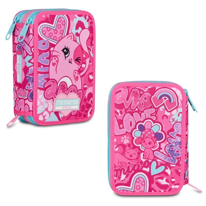 Astuccio triplo Mitama Pro Cutiecat perfetto per bambine che amano uno stile tenero e colorato.