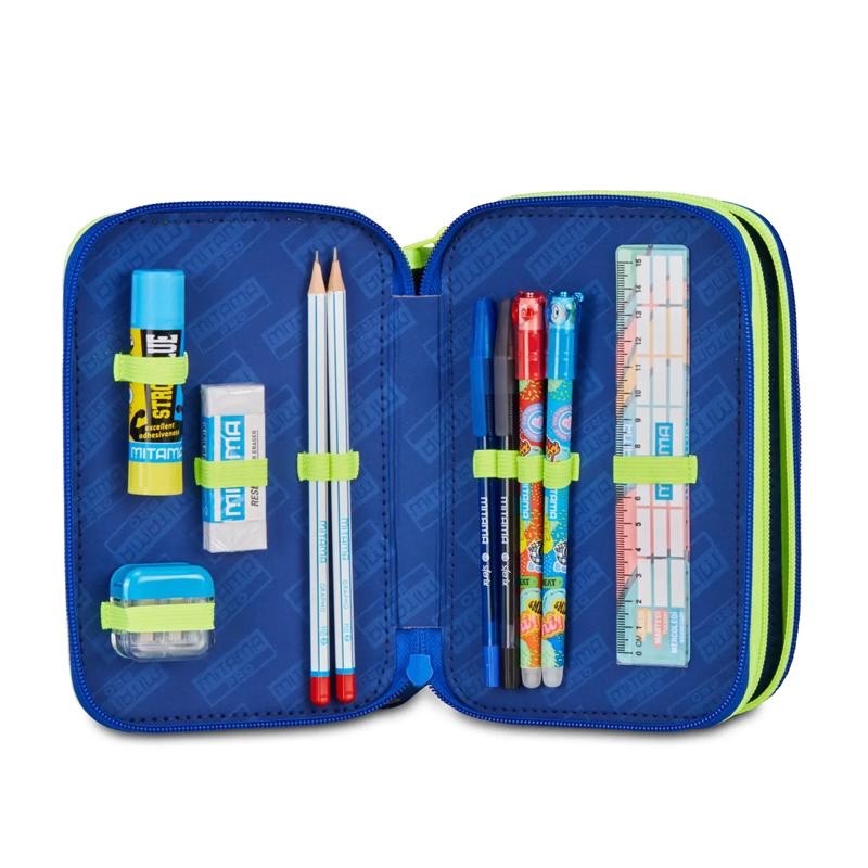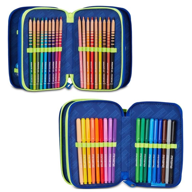 Set Completo 47 Pezzi per la Scuola L astuccio Mitama Pro include 47 pezzi: 2 penne cancellabili Spinny (blu e rosso), 2 penne Sferix fluo, 2 matite HB, gomma Reset, temperino doppio foro, 18 pastelli 4.0, 18 pennarelli superlavabili triangolari, righello, colla stick 9g ed evidenziatore doppia punta. Un kit completo per tutte le attivit scolastiche.