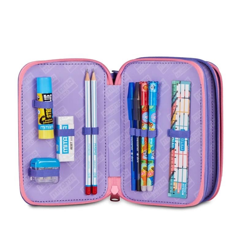 Astuccio triplo Mitama Pro perfetto per bambine che amano uno stile unico e colorato.