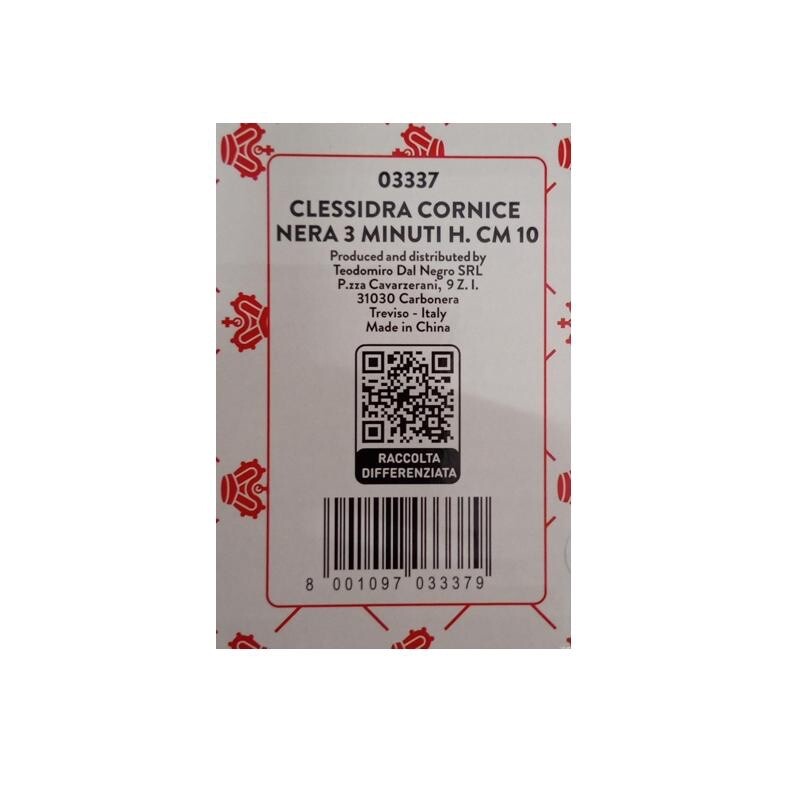 CLESSIDRA CORNICE NERA 3 MINUTI H. 10 CM – 03337