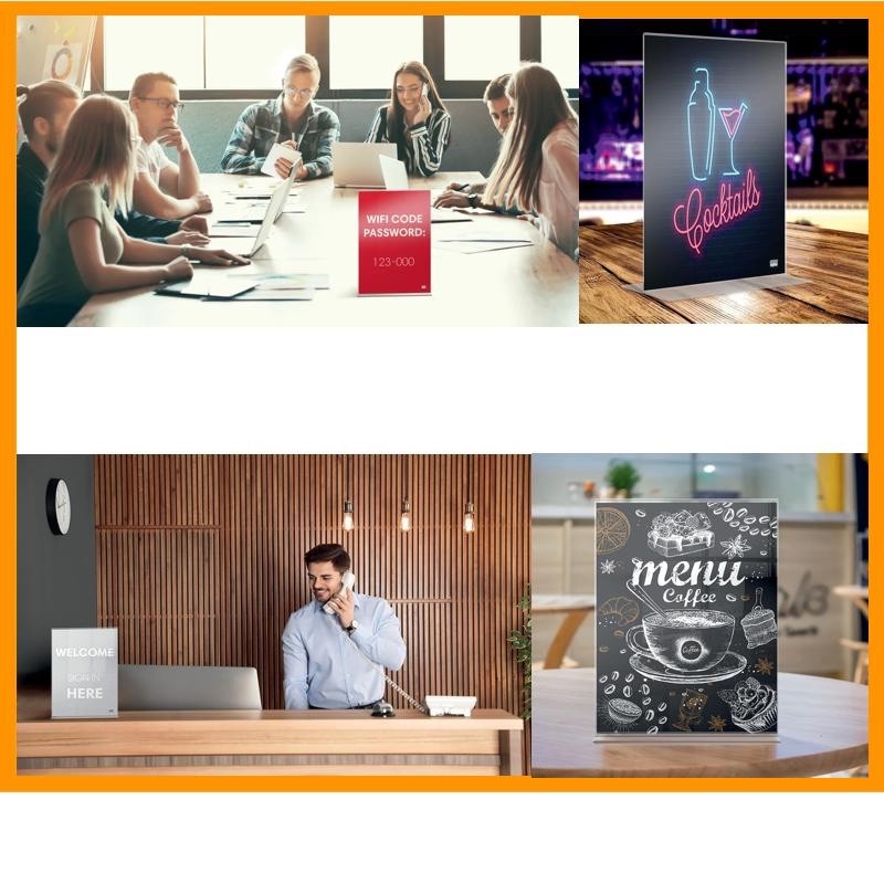 • Porta segnaletica da scrivania con design contemporaneo senza cornice