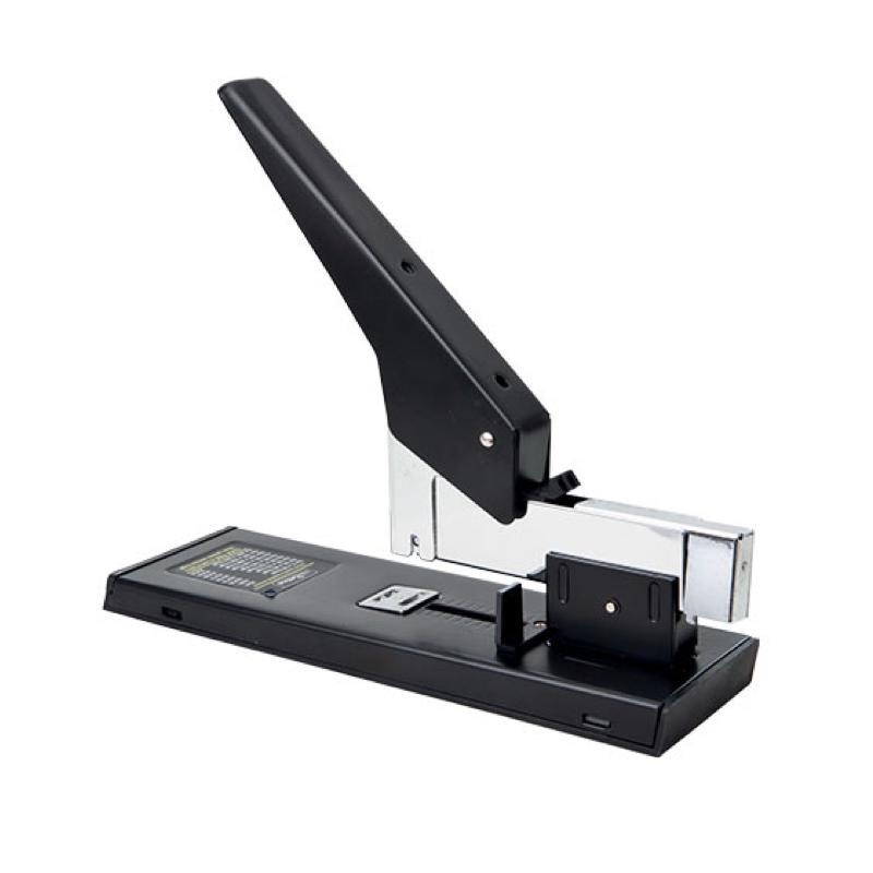 Cucitrice da tavolo per alti spessori con struttura in metallo e potente braccio di leva che rende facile la cucitura. Cuce fino a 100 fogli con regolazione della profondit di inserimento fino a 7 cm