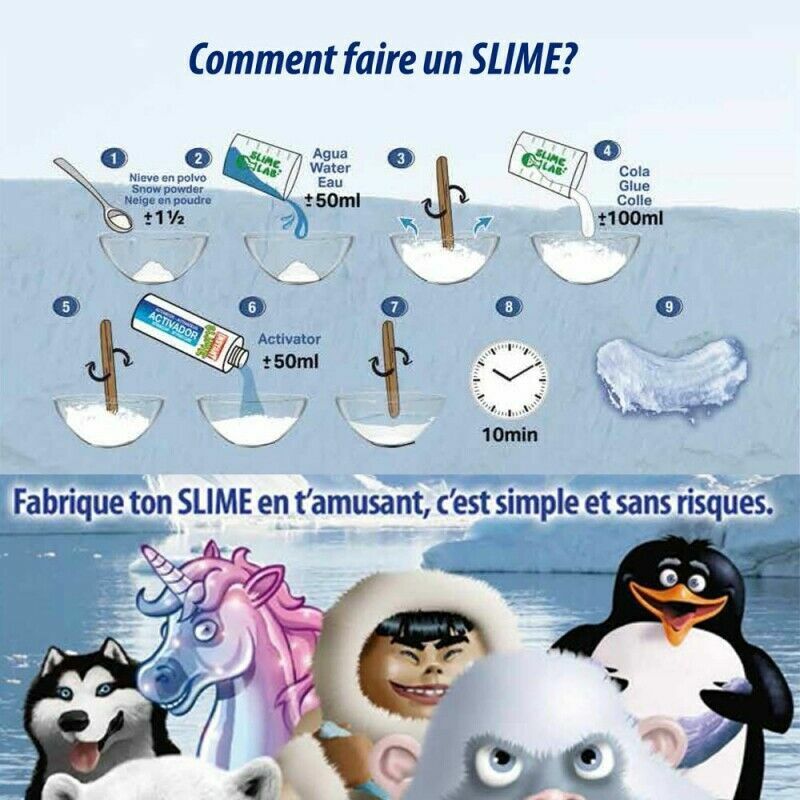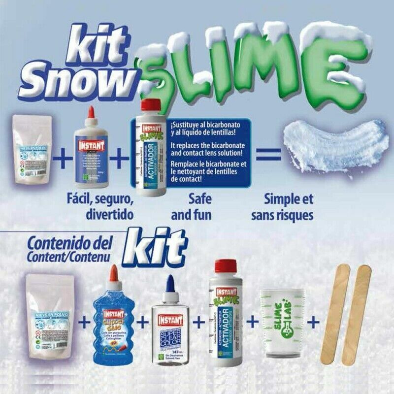 Rendi il tuo SLIME facile, sicuro e divertente con questo KIT SNOW SLIME che contiene tutto il necessario per preparare la ricetta melma senza rischi.