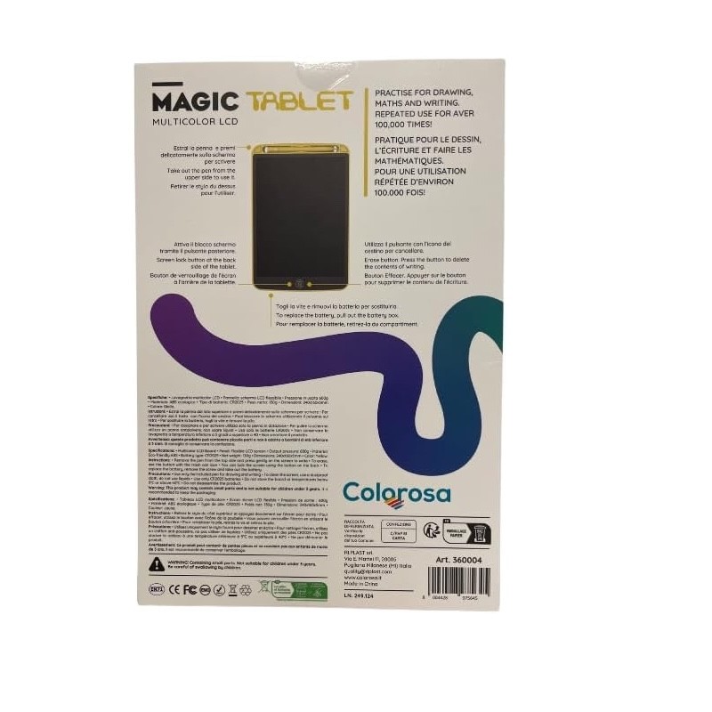 Scopri la lavagnetta LCD Colorosa Magic Tablet da 10 pollici 165x249mm è perfetto per bambini e adulti. Questa tavoletta grafica cancellabile offre un’esperienza di scrittura naturale senza carta, ideale per disegnare, prendere appunti e sviluppare la creatività. Il colore verde rilassante stimola la concentrazione e la creatività. Con schermo LCD multicolor e penna inclusa.