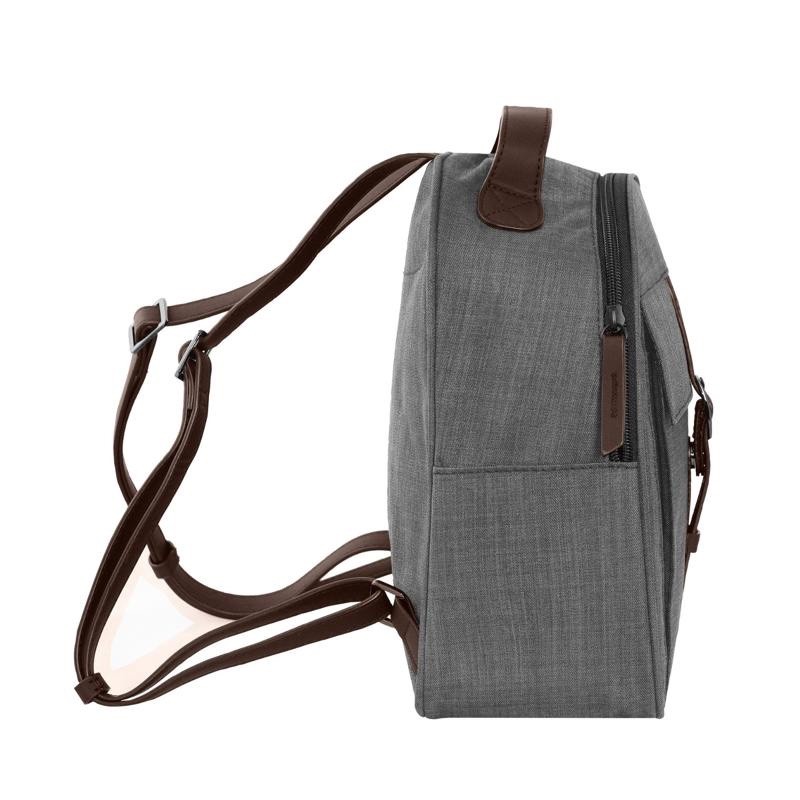 realizzato in tessuto blu scuro con effetto tipo jeans, con dettagli neri che gli danno un aspetto elegante e minimal. Nella parte frontale ha una tasca con cinturino e fibbia, che richiama uno stile un po vintage.