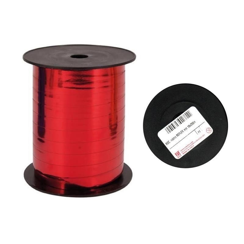Rotolo di nastro per confezioni e scatole regalo.Larghezza nastro: 10mmLunghezza nastro: 250m.Colore: rosso lucido.Marca: Bolis