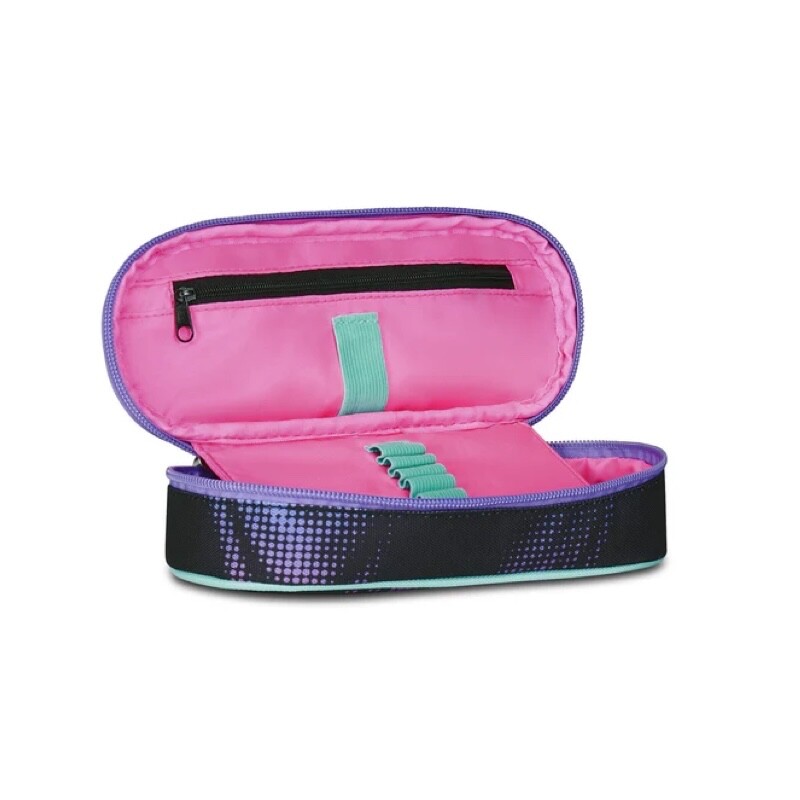 Il portapenne Seven Round Plus al suo interno ha elastici portapenne e un taschino con zip per permetterti di organizzare al meglio tutto il materiale necessario per la tua giornata di scuola. A te non resta altro che abbinarlo a uno zaino o a un trolley Seven.