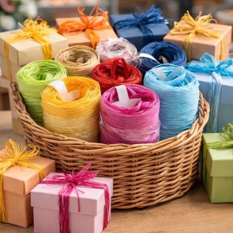 Questo Nastro creato con solida Rafia Sintetica in grado di soddisfare l’esigenze di chi ama il gusto rustico e allo stesso tempo moderno. Il nuovo classico nella decorazione, conferisce al packaging un aspetto naturale pur essendo resistente all acqua, caratteristica molto comoda tipica dei nastri in polipropilene.